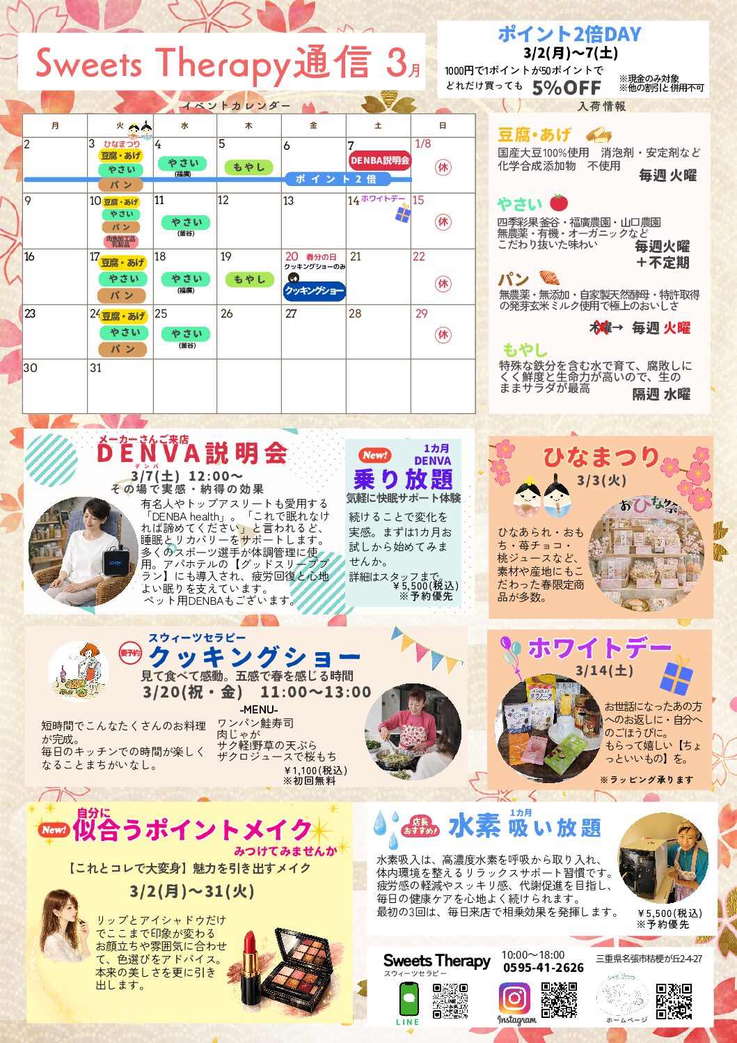 3月の定休日は、1(日)8(日)15(日)22(日)29(日)です。20(祝・…