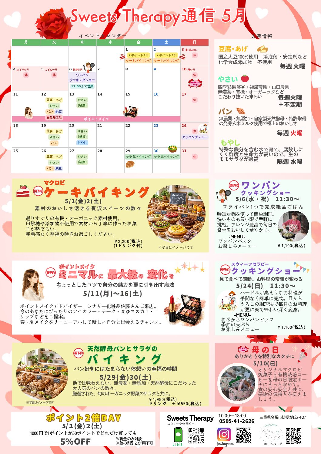 4月の定休日は、5(日)12(日)19(日)26(日)です。29(祝・水)は1…